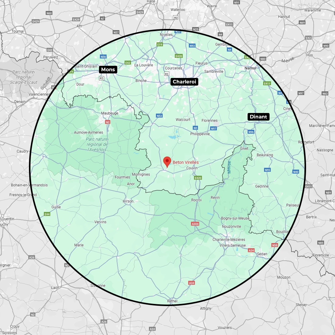 Notre rayon d'action nous permet d’atteindre une vaste clientèle et de répondre à toujours plus de demandes. Des bétons de qualité et disponibles à la livraison sur votre chantier ? C’est le moment de faire appel aux services de Pirlot Béton !